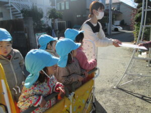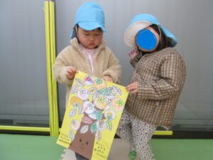 そら組は、姉妹園の中神町園との交流会の時に柿を貰い、お礼を本日しに行きました。
