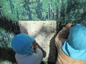 保育者が葉っぱをこまかくしてシャワーをかけると大喜び🌟