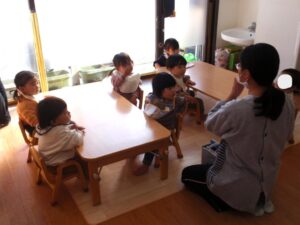 ひまわり組さんはご飯の前に「あぶくたった」というわらべうたの絵本を楽しんでいました☺
