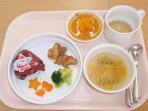 今日の給食やおやつはクリスマスメニューです。