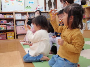 朝おやつの後はリトミックがありました。