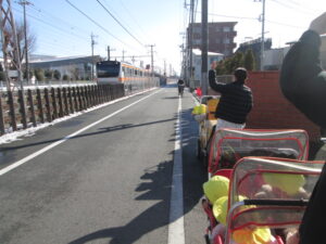 電車が大好きな、ひまわり組は電車が通るたびに大きな声で「バイバーイ!!」と言っています。