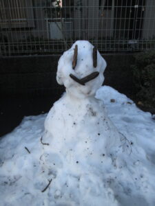 最後にマンションのエントランス前でこんな雪だるまを見つけました。