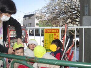 ひまわり組もそら組も朝日町の遊歩道付近まで行き、雪景色を見ました。