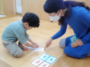 先生から渡されたカードと同じアルファベットのカードを探してきて並べていきます!