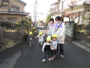 雨上がりのため、公園には行かず、園周辺に出掛けました。
