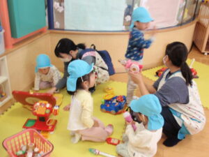 保育園にはない玩具がいっぱいで目を輝かせていた子どもたち。