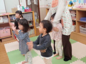 公園に行けなくてもお部屋で身体をいっぱい動かしました。