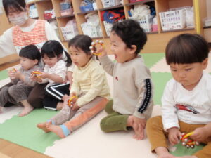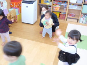 初めてのお友だちは泣いてしまうかな・・・ と思いましたが、みんな音楽遊びが好きなようで笑顔が多く見られました!!