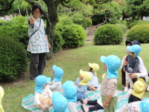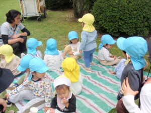 食べ終わったお友だちから、芝生で遊ぼうとしたのですが、小学生のお友だちが課外授業で使っていたので