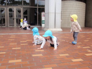 よーいどんの合図で走ったり、ハイハイで動き回ったり、元気に遊んでいました。