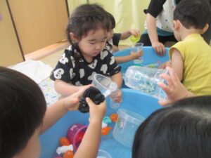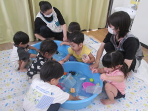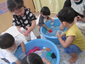 色々な物を浮かばせて、思い思いに水遊びを楽しみました💧