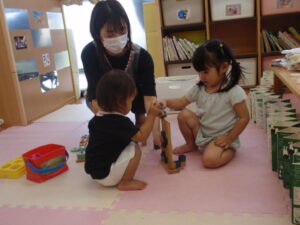 水遊びの後は、室内でゆったり遊んで過ごしています。