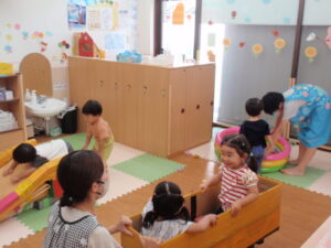 室内水遊びではみんな大好きなスポンジ集め🌟