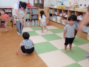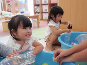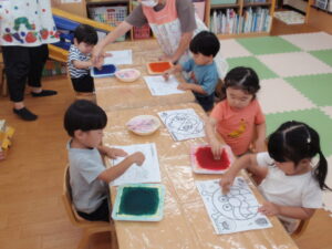 水遊びの順番を待っている間、そら組さんはスタンプをしました。