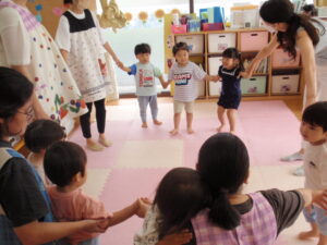 London bridge is falling down(ロンドン橋落ちた)では、橋の下で止まって落ちるのを待つ子もいて盛り上がりました🌟