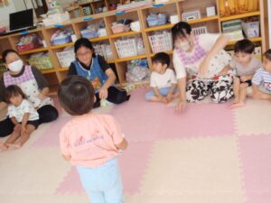 大きな輪の時は大きな声で、小さな輪の時は小さな声を出しました🌟小さな声の時には不思議と体も小さくなっていて可愛かったです☺