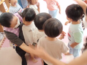Row Row Row Your Boat(お舟漕ぎ)は二人一組で音楽に合わせて舟を漕ぎました。