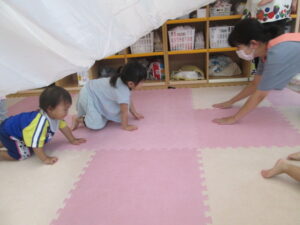 ハイハイをしてくぐってみたり…