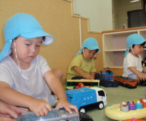 お部屋に入るとケロッとして楽しそうに遊んでいる子どもたちです☺
