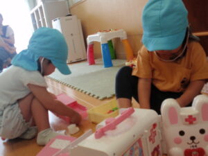 園にはないお医者さん玩具に黙々と遊んでいましたよ♪