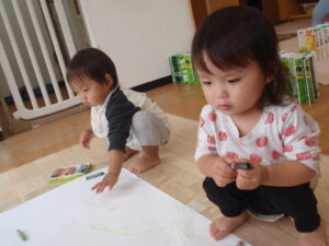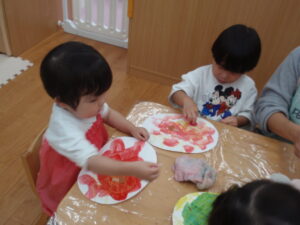 お部屋の中でたくさん遊んで、制作活動もしました。