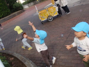 シャボン玉を突っついたり、夢中で追いかけて遊んでいましたよ🥰