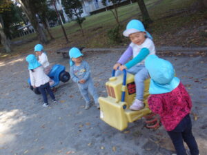そら組さんも公園に行き、遊具で遊んだり、落ち葉やどんぐり拾いを楽しみました♪