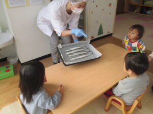 食育は、秋の味覚を楽しもう!ということで旬のサンマを見て実食してみました🐟