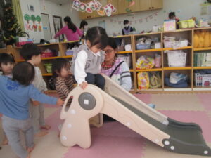 なんと、保育園に新しい滑り台が・・・!!