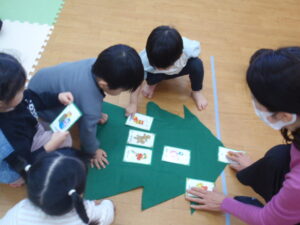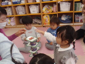 クリスマスのカードやベルが出てきて音楽に合わせて鳴らして遊びました。