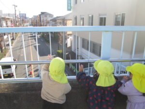 ひまわり組さんは、歩道橋の上から行き交う車をたくさん見ました🚙🚌🚚・・・
