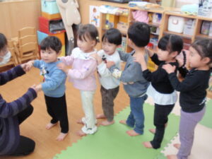 リトミックでは節分が近いので鬼に変身したり、豆まきをしたりしました!