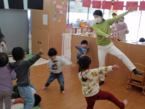 英語では、そら組さんが大好きな体でアルファベットを表現しました。