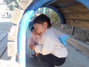 公園に着くと、かくれんぼやロープ遊具等、思い思いに楽しく遊んでいました。