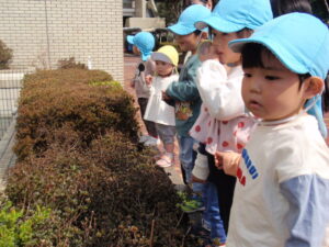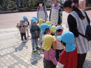 そら組さんは、ひまわり組さんのだれと手を繋ぐかを相談中👂