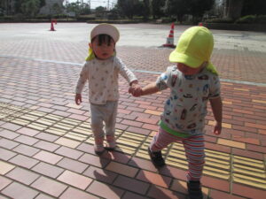 公園ではお花を観察したり、手を繋いで仲良く遊びました♪