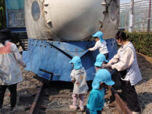 公園では新幹線の周りで遊んだり、滑り台や砂場で遊びました。