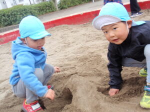 「お山作ろう!」「トンネル作ってー」と大作を作ったり、