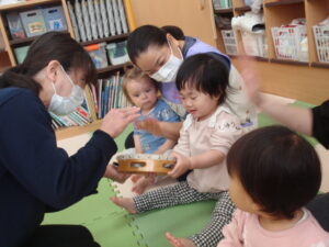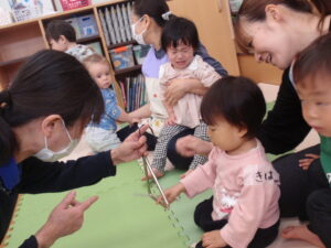 ひまわり組です。初めての講師の先生に泣いてしまうお友だちもいましたが、
