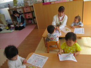 英語の後はシール貼りでゆったりと過ごしました。