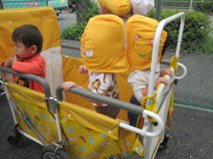 新入園児は初めての防災頭巾に戸惑う子もいましたが、無事全員避難することが出来ました!