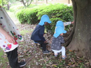 ひまわり組・そら組合同で行ったので、ひまわり組のお友だちがそら組の真似をして遊ぶ姿もありました♬