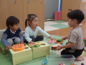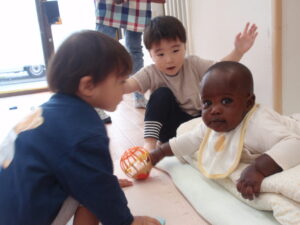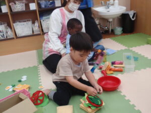 そら組さんは自分よりもお友だちにオモチャを渡したり、いないいないばあをしてあやしてくれる姿がありました☺
