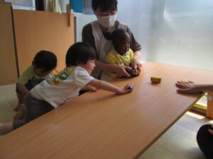 玩具を転がしたり室内で楽しく過ごしました。