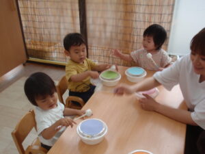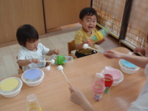 保育士の真似をしながらポンポン♬と叩くことを楽しんでいましたよ☺