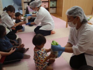 あまりにも酸っぱい匂いだったため、鼻を押さえる子や体ごと後ろにいく子がいました。