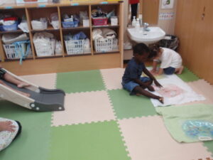 そら組さんはすべり台や水が入っているマットで遊びました。