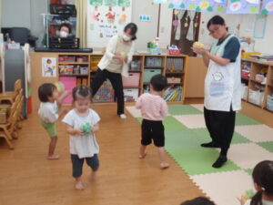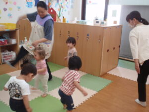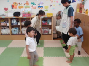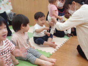 表現していました。また最後には保育士と子どもたちとグループになり、歌に合わせて