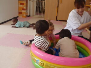 今日はひまわり組・そら組ともに室内で遊んで過ごしています。